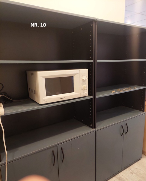 Nr. 10 Skapji ar plauktiem un durvīm (der dokumentu glabāšanai un traukiem) augstums 1,72, platums 0,9m (pieejami divi gabali) - bezmaksas