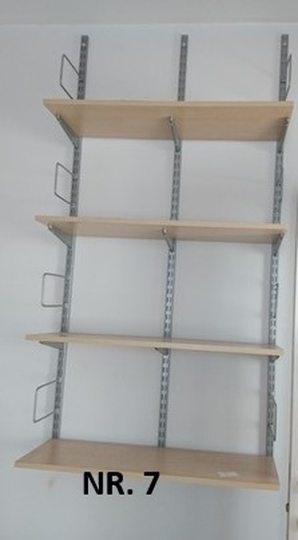 Nr. 7 Dažādi plaukti ar stiprinājumu pie sienas - platums 60 cm (3 gab), 46 cm (5gb) 100 cm (5 gb) (VISI REZERVĒTI)
